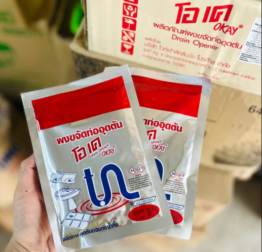 Đường ống thoát nước bị tắc gây mùi khó chịu, nước thoát chậm? Bột thông cống OKAY 100G Thái Lan là giải pháp nhanh gọn giúp phân hủy chất thải – thông tắc tức thì – khử mùi hiệu quả!
