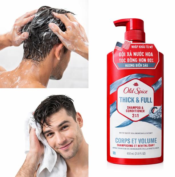 Dầu Gội Xả Nước Hoa Old Spice Thick & Full 650ml Mỹ – Tóc Dày Khỏe, Hương Thơm Nam Tính
