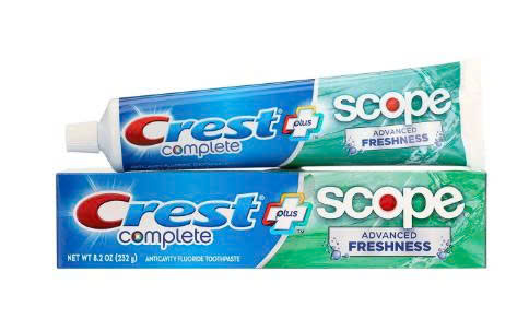 Đây là dòng sản phẩm kết hợp sức mạnh làm trắng của kem đánh răng Crest với sức mạnh tươi mát của nước súc miệng Scope. Sự kết hợp này mang lại hiệu quả trong việc phòng chống sâu răng, ngăn ngừa sự hình thành cao răng và loại bỏ tối đa các vết bẩn trên bề mặt răng giúp hàm răng trở nên trắng sáng nhanh chóng chỉ sau 3 ngày sử dụng.