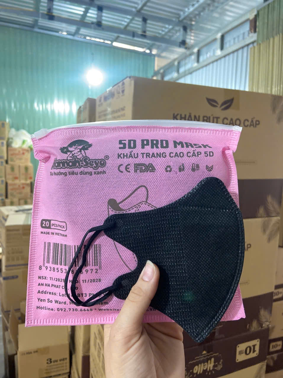 Khẩu Trang Cao Cấp 5D Hannah Seyo MÀU ĐEN THÙNG 100 CÁI