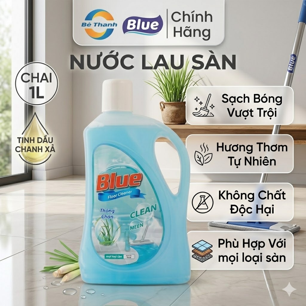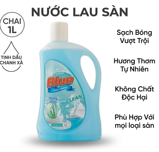 Nước Lau Sàn Clean Xanh Dương 1L – Sạch Khuẩn, Thơm Mát, Bóng Sàn Hiệu Quả