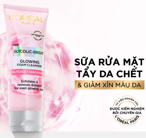 • Tên sản phẩm: Sữa rửa mặt L’Oréal Paris Glycolic Bright